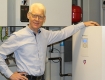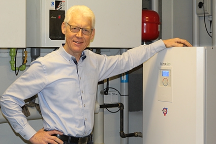 Direktør Kaj Hansen viser varmepumpen fra Klimadan.